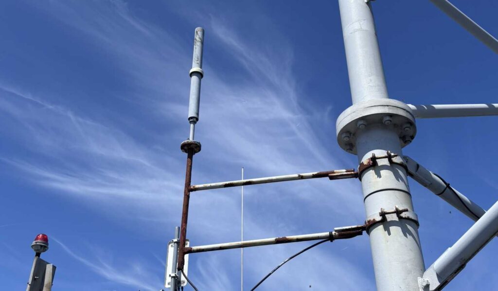 Aan de andere kant van deze mast zat nog zo’n antenne met wat minder roest.